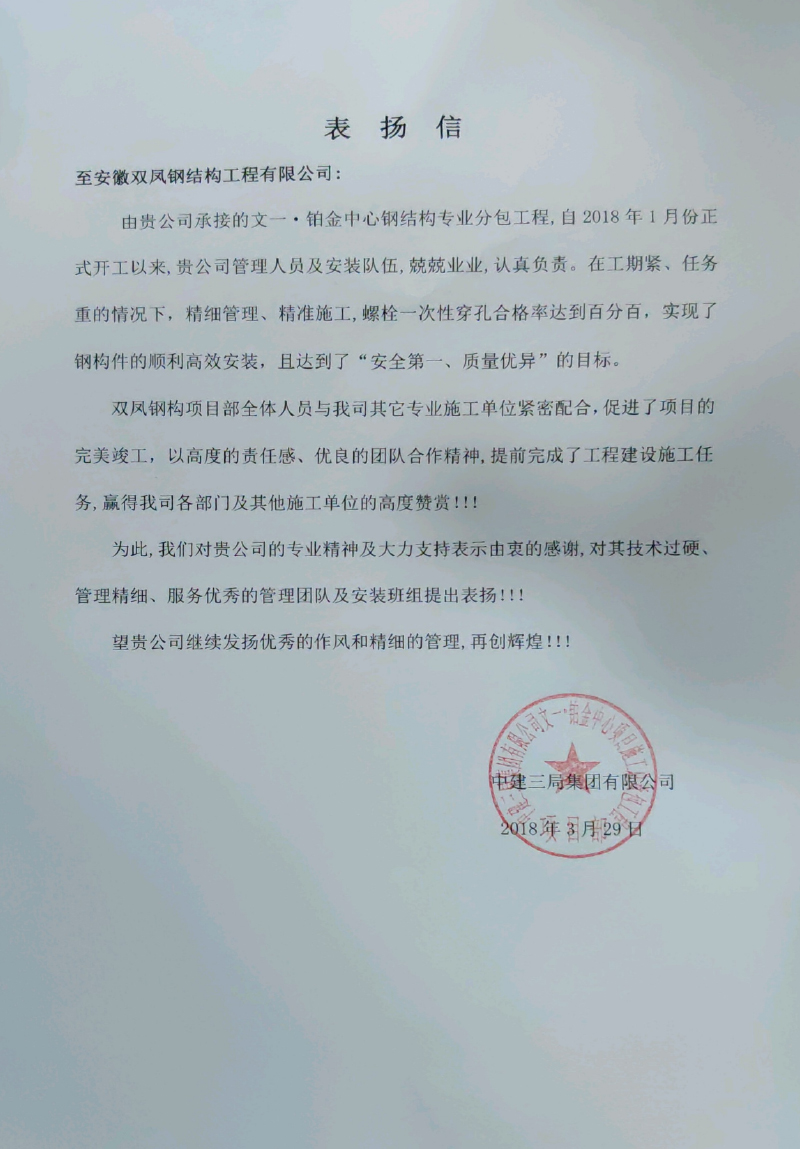 表扬信(文一铂金)