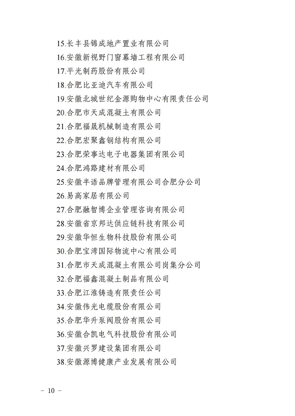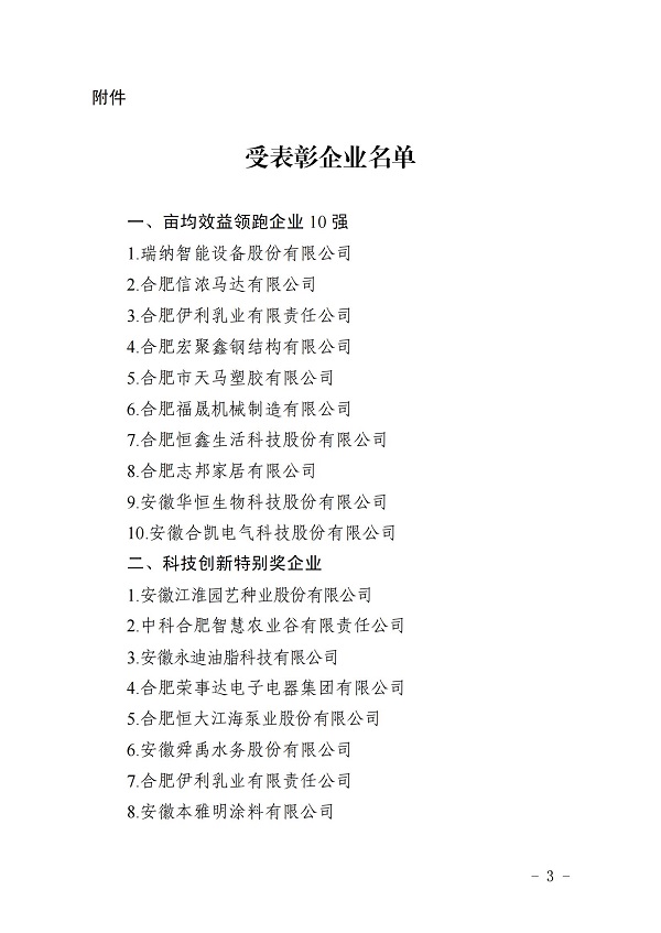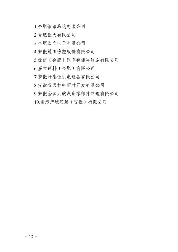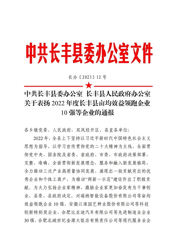 2022年度中共长丰县委办公室长县人民政府办公室关于表扬2022年度长丰县亩均效益领跑企业10强等企业的通报(正式公文)