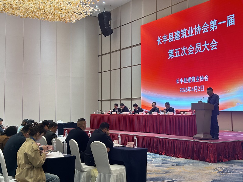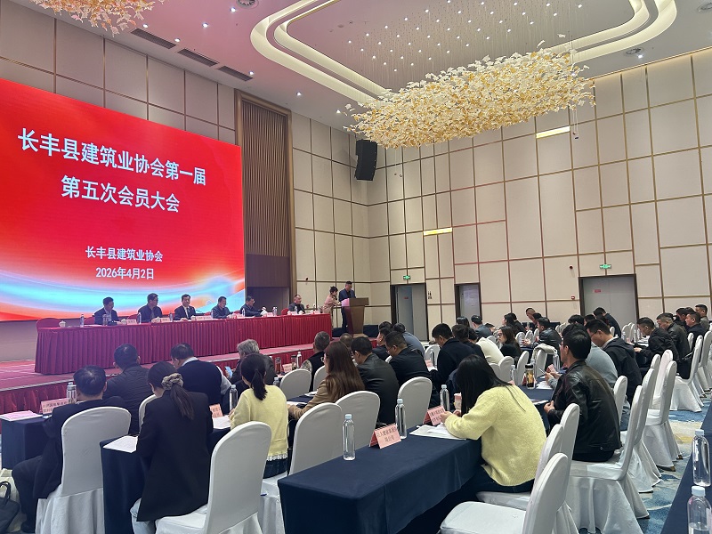 本次会员大会由长丰县住建局副局长王益平主持,副县长卫涌波、合肥市城乡建设领域协会(中心)党总支副书记孙业飞等领导出席会议。会上,协会全面总结 2025 年度全县建筑业发展成果,深入部署 2026 年度行业重点工作,并对优秀建筑企业予以通报表彰,旨在树立行业标杆、凝聚发展合力,推动长丰建筑业高质量发展。