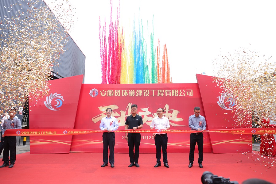 省合作交流办公室陈龙主任,安徽省巢湖市委常委、组织部张金平部长,双凤钢构董事长汪建环和凤环巢总经理王文明一同为新厂剪彩。张金平部长还发表了重要讲话,肯定了凤环巢建成快、试营业成绩好、同时对凤环巢提出了做强做大的希望。随后双凤公司董事长汪建环、安徽省钢结构协会秘书长朱华也发表了祝词,凤环巢总经理王文明也做了工作汇报。庆典仪式结束后,总经理吴正江于巢湖市国际饭店的午宴上,助兴诗作一首,为凤环巢送上美好祝福。